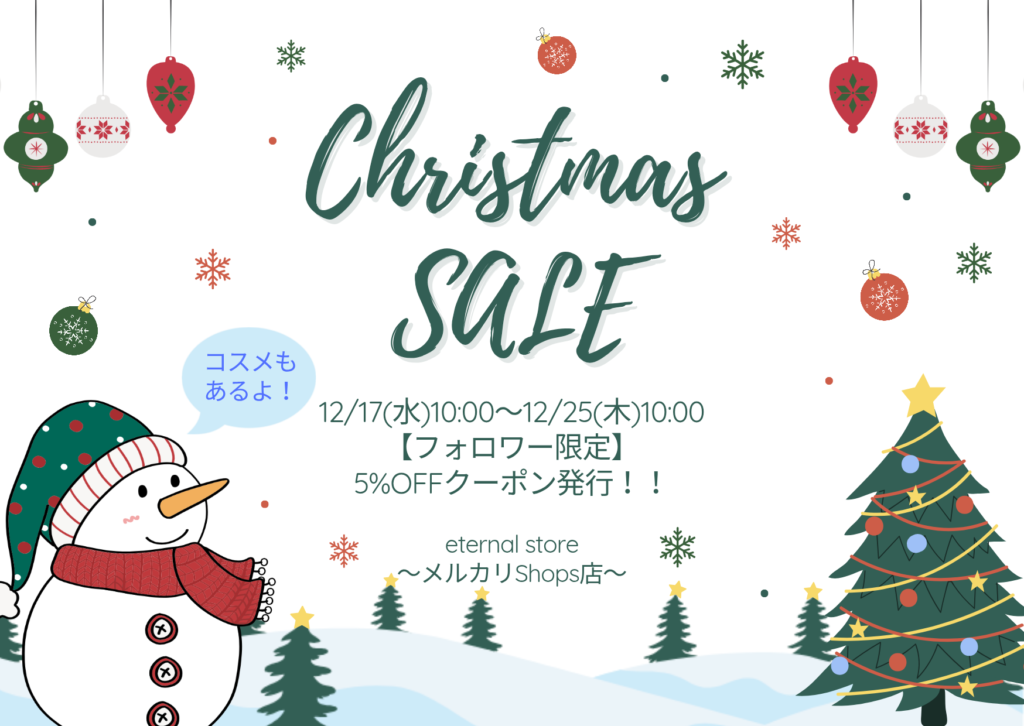 本日よりメルカリShops店にて「クリスマスセール」が始まりました!!