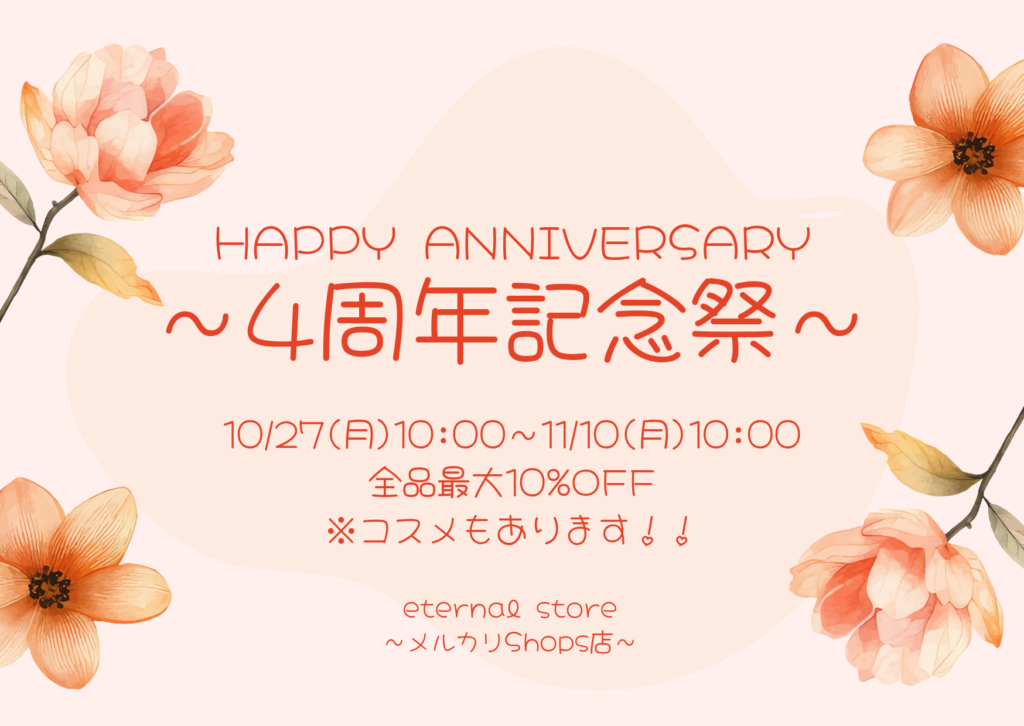 メルカリShops店”4周年”記念セール開催中!!